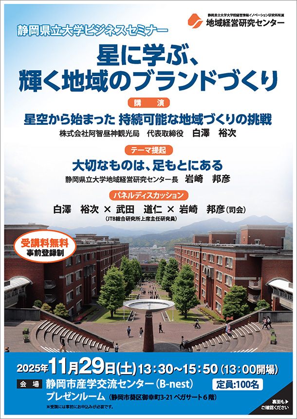 ホーム >  イベント >  静岡県立大学ビジネスセミナー「星に学ぶ、輝く地域のブランドづくり」