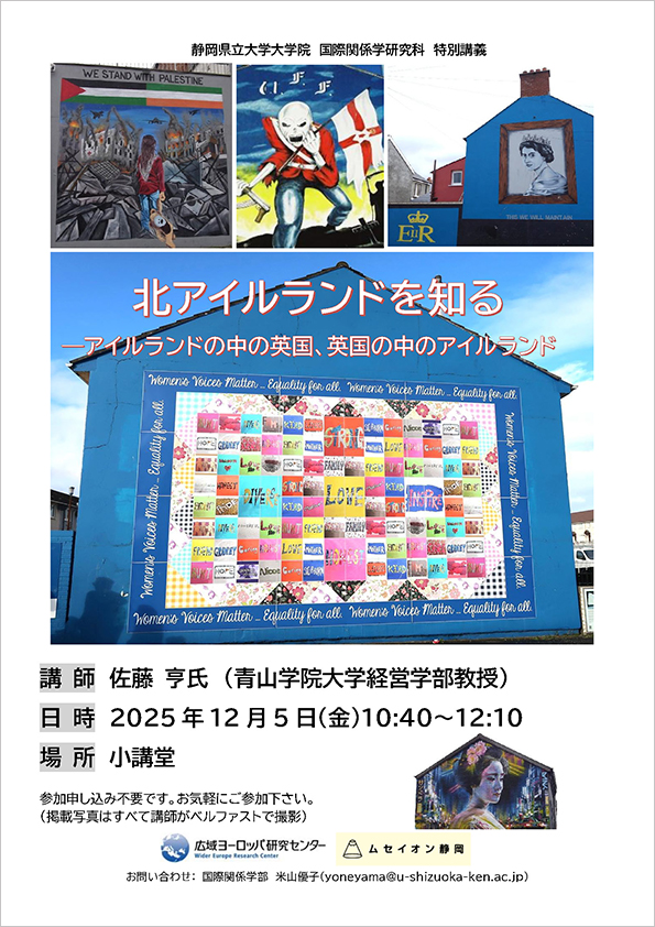 アイルランド文学者である講師が現地で撮影した写真をもとに、民族、帰属意識、宗派など複数の要素が絡み合う北アイルランド問題について解説します。