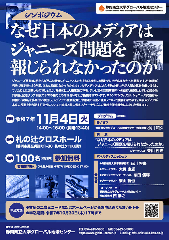 グローバル地域センターがシンポジウム「なぜ日本のメディアはジャニーズ問題を報じられなかったのか」を開講します。