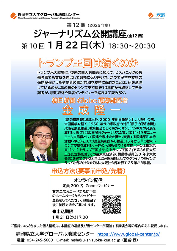静岡県立大学ジャーナリズム公開講座は令和7年度、全12回の講座を開講します。