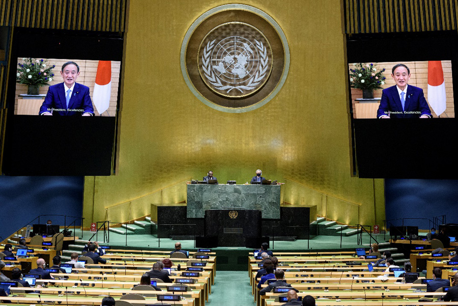 国連総会の一般討論における菅首相の演説(出典:UN Photo / Loey Felipe)