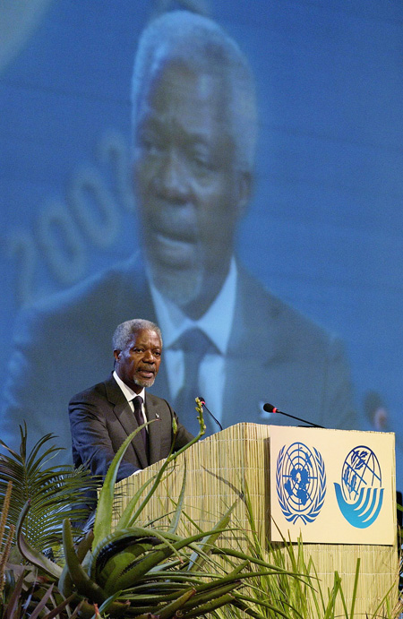ヨハネスブルク会議で演説するアナン国連事務総長(出典:UN Photo)