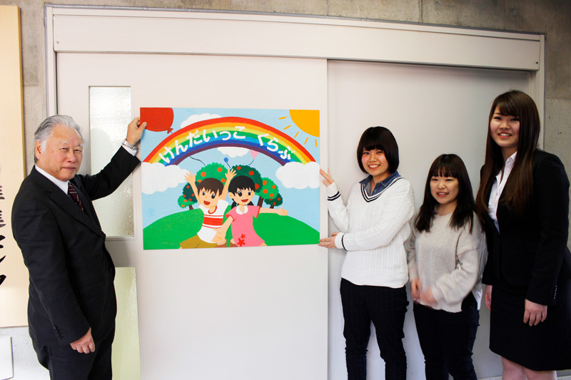 男女共同参画推進センター内に設置されている多目的保育支援室の愛称がこのほど決定し、2月13日に短期大学部こども学科の学生が制作した看板のお披露目を行いました。